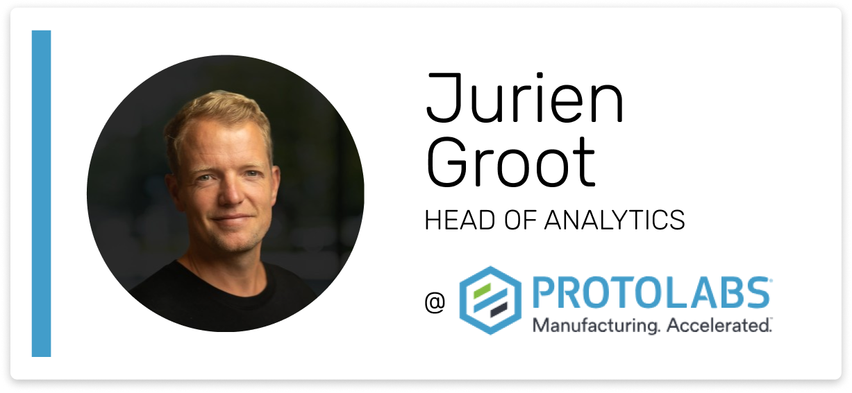 RecentlyJurien Groot, Head of Analytics at Protolabs, a Global Distributed manufacturer of low-volume, custom parts for prototyping and short-run productions, sat down to talk us through how he runs a central analytics team with embedded analysts across the business.