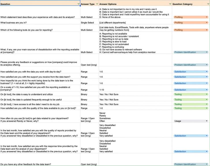 âItâs important that you follow up with the organization so they know it was worth their time to do that survey. We immediately made the results available in Slack as well as what we were planning on doing with it. When we run data trainings for new hires now, this is the dataset we use as well. Itâs become a shared artefact, not just something for the data team.â - Daniel McNamara