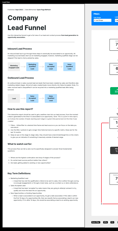 To show you this process in the real world, I’ll use one of my canvases’ as an example. The users were Marketing and Sales Leaders. The team wanted better visibility into the lead funnel, all the way from generation up to opportunity creation.