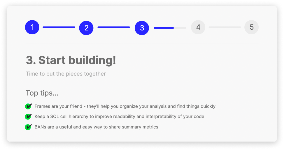 This will give you the perfect opportunity to to do some quality assurance. I personally quality check my analysis by running some queries to mimic the data in the canvas directly into our snowflake IDE. This allows me to double check the analysis/transformations that exists within the canvas, allowing me to identify any miss-match of data.