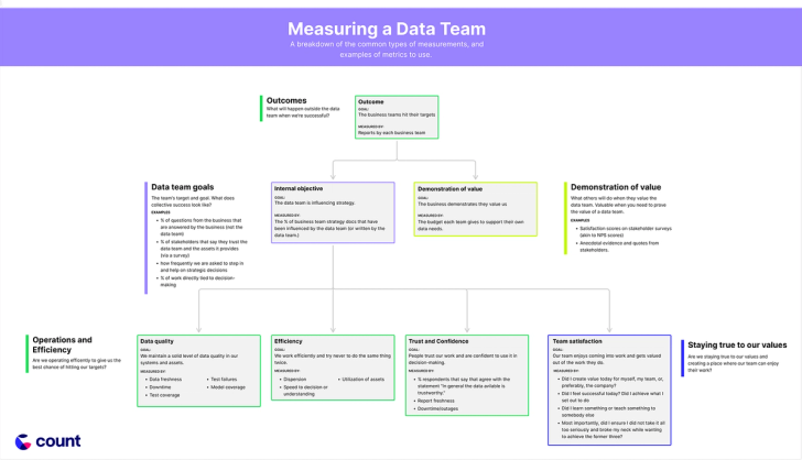 As we mentioned above, most teams know if they’re successful if the business is also successful. However, it’s helpful to break that down further. What does it look likeinsidethe data team when we’ve achieved that outcome?