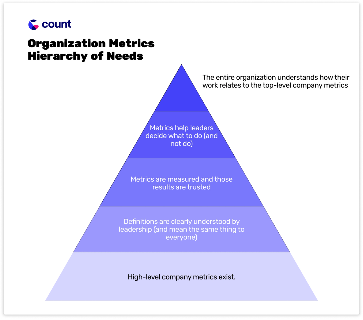 One data leader worked with 3 business leaders - the CEO and two business division leads - to build their metric tree. The four of them met once a week and discussed first what the company metrics should be, the nuances of those definitions, and then as the data leader brought in live data, the results of those metrics.