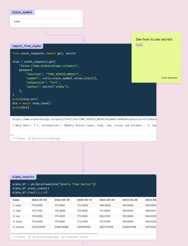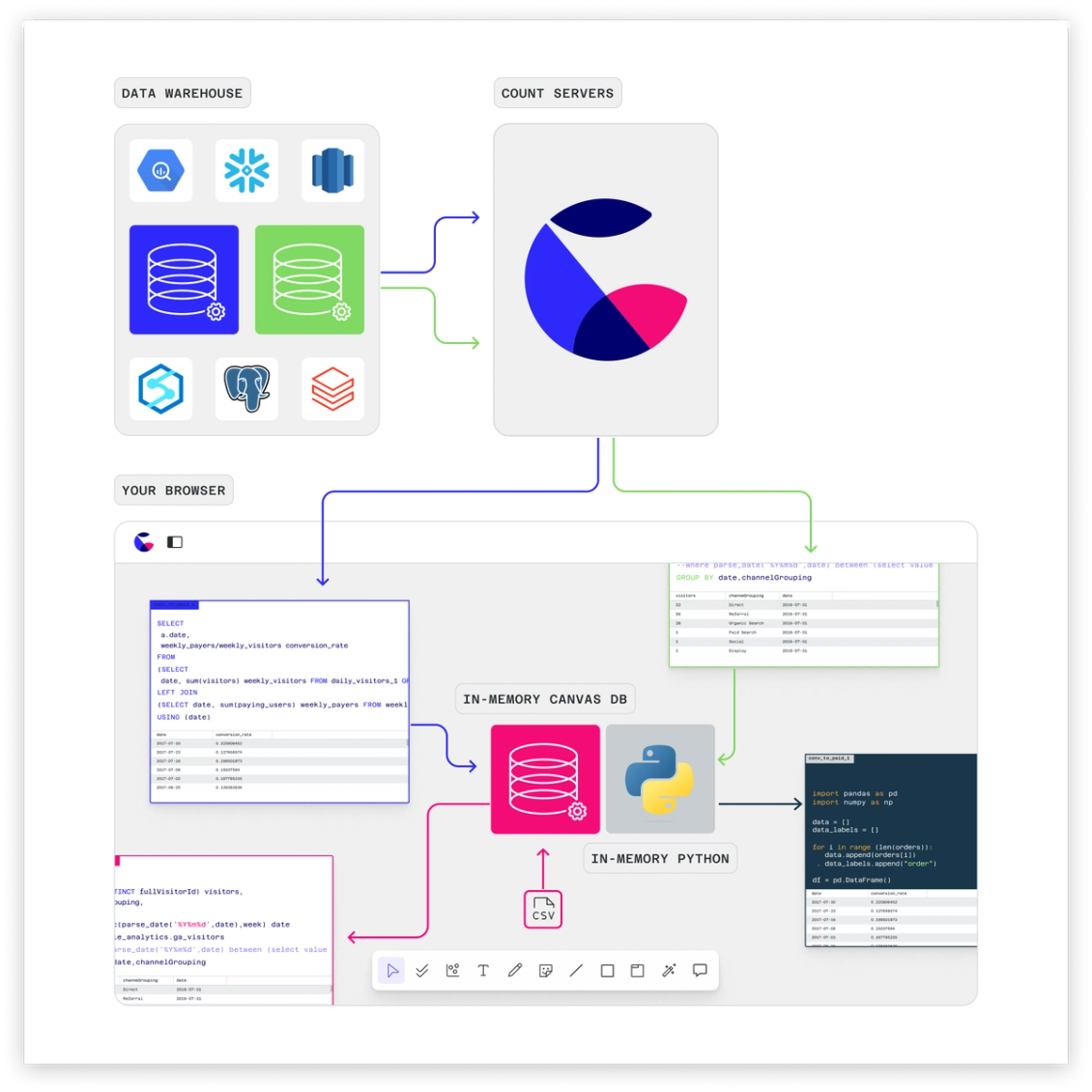 Count has always been a SQL-first tool. We believed (and still do), that SQL is the primary language of data analytics, but over time we couldn’t deny the growing role Python was playing in data teams. SQL was the way you spoke to the database, but Python was getting used for so much more: pulling data from APIs, creating predictive models and forecasts, finding outliers, creating custom visualizations, etc., etc.