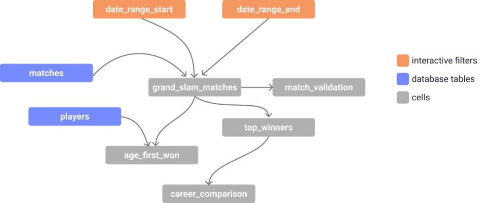 If we wanted to expand our analysis to include a few more queries, we can chain more cells together. And if we wanted to include global filters, we can add those to the notebook and link those in like any other cell.