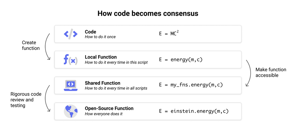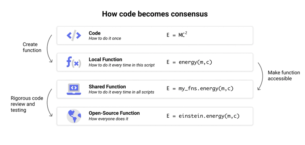 One of the most popular features of Python or R is the ability to modularize code for re-use through the use of functions. Platforms like pypi, tidyverse, and npm have taken this even further by letting users share these functions beyond their teams and to the entire community of users.