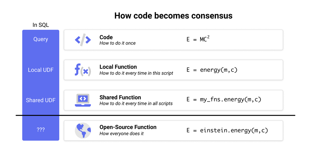 Recently, I’ve been wondering what role UDFs will play in SQL’s evolution. Our desire to be able to easily re-use SQL is growing ever more rapacious and is now one of the most frequent requests I hear from analysts.