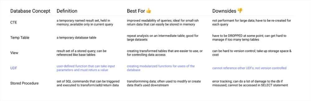Furthermore, if I built a UDF using something other than SQL (e.g. JavaScript), Ireallycan’t share it with many people. If it suddenly stops working and I’m not around, I’m not confident my data team can fix it. As a wise Uncle once said, “With great power comes great responsibility.”