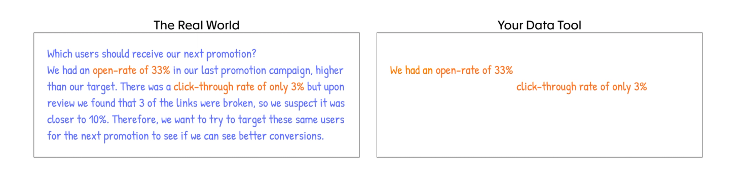 To many business users data is now synonymous with dashboards. While a seemingly benign misunderstanding, this actually causes a whole slew of downstream effects, namely: