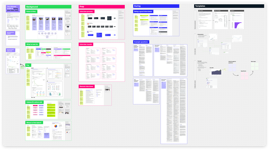 Over the span of a week, I went deep into the world of hiring, specifically hiring for data roles. My research took me across: