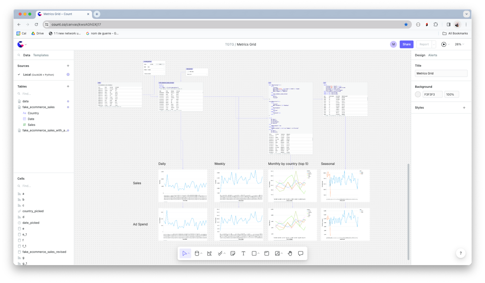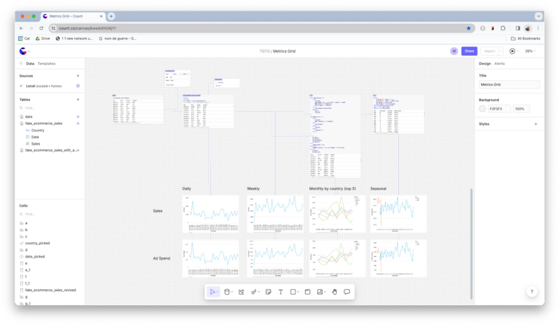With Count’sintegrations, the team brings together data from their MySQL databases, third-party platforms like Salesforce, and external APIs into a unified analytical environment that everyone can access with a link. This consolidation has drastically reduced the time and complexity associated with data preparation, enabling analysts to spend more time deriving insights.