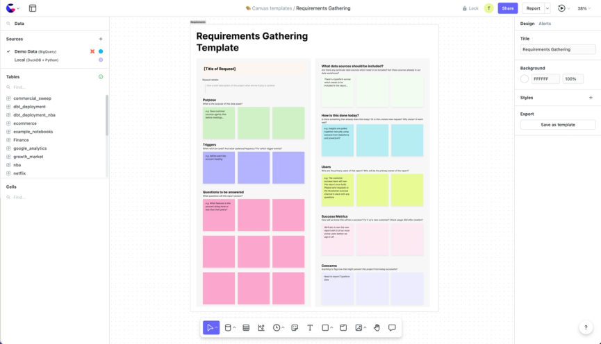 For Sara and her team to be at their best, they needed a tool that let them focus on the problem at hand and have the flexibility to problem-solve creatively. The canvas lets them do the necessary work - from data modeling, exploration, analysis, visualization, and reporting - in one tool instead of switching between several. Moreover, it gives them the space to experiment with different approaches to find the best course of action: