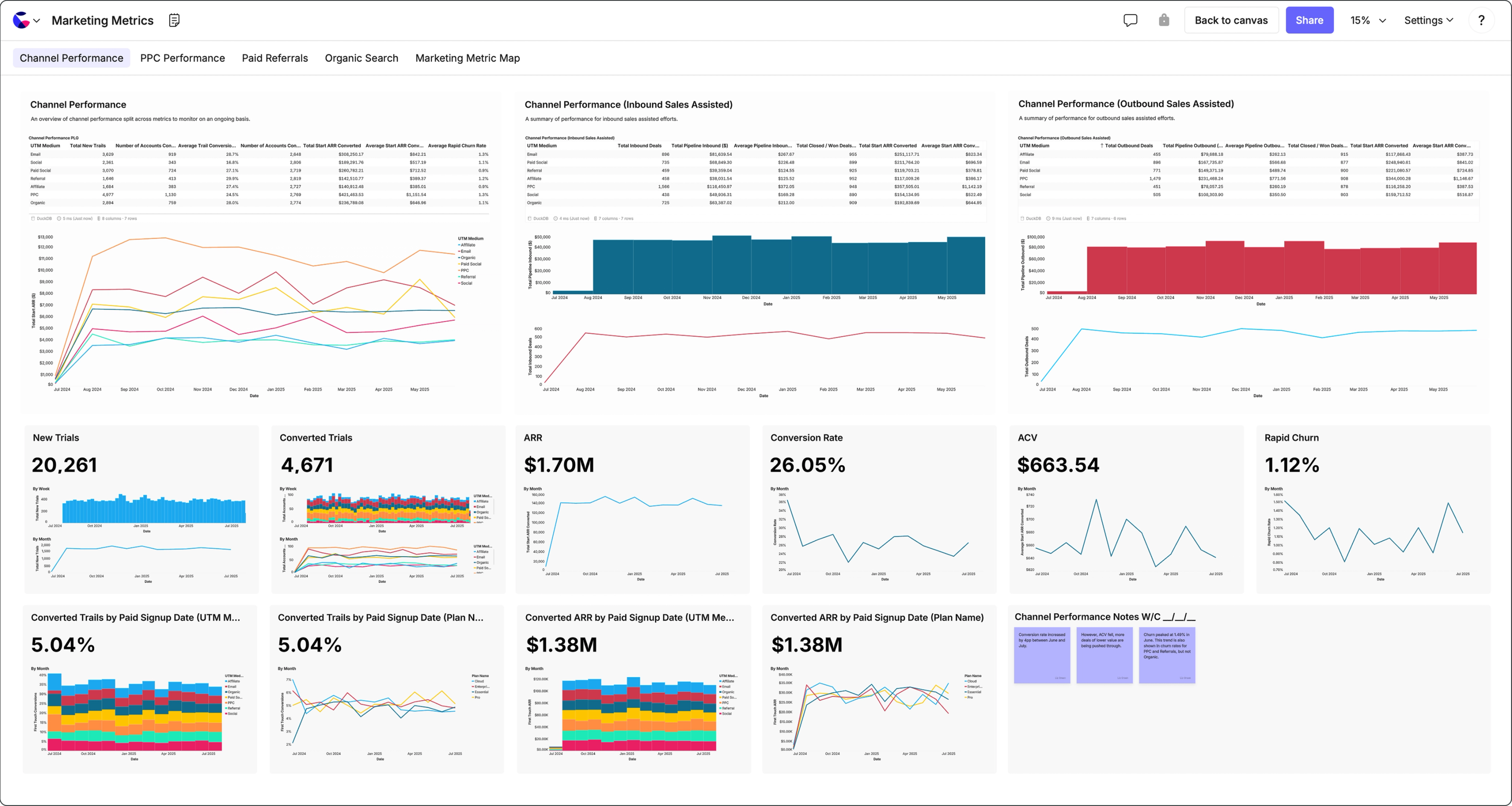 Build rich reports from your canvases that become living documents, not read-only dashboards.